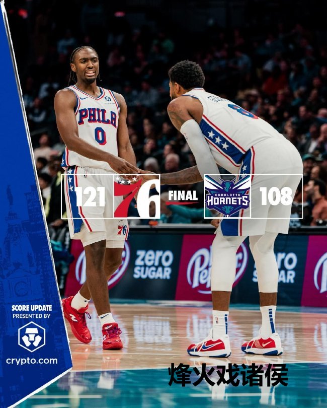 恩比德继续伤停,马克西轰下40分5篮板5助攻4抢断率队取胜。保罗-乔治20投13中、三分9中6,高效砍下33分5篮板8助攻2抢断。76东谈主取胜后,8胜16负排在东部第12。