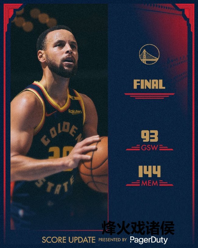 北京时辰12月20日,NBA旧例赛,灰熊144-93大捷骁雄51分,斯蒂芬-库里7投0仅得2分,骁雄碰到3连败跌至西部第十。