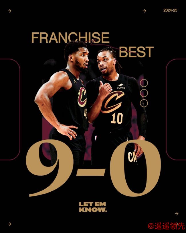 骑士豪取9连胜创造队史最佳开局,目前9胜0负战绩高居联盟第一。